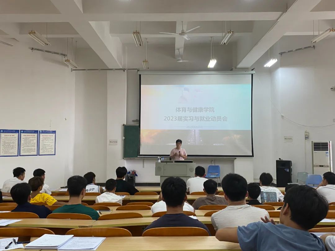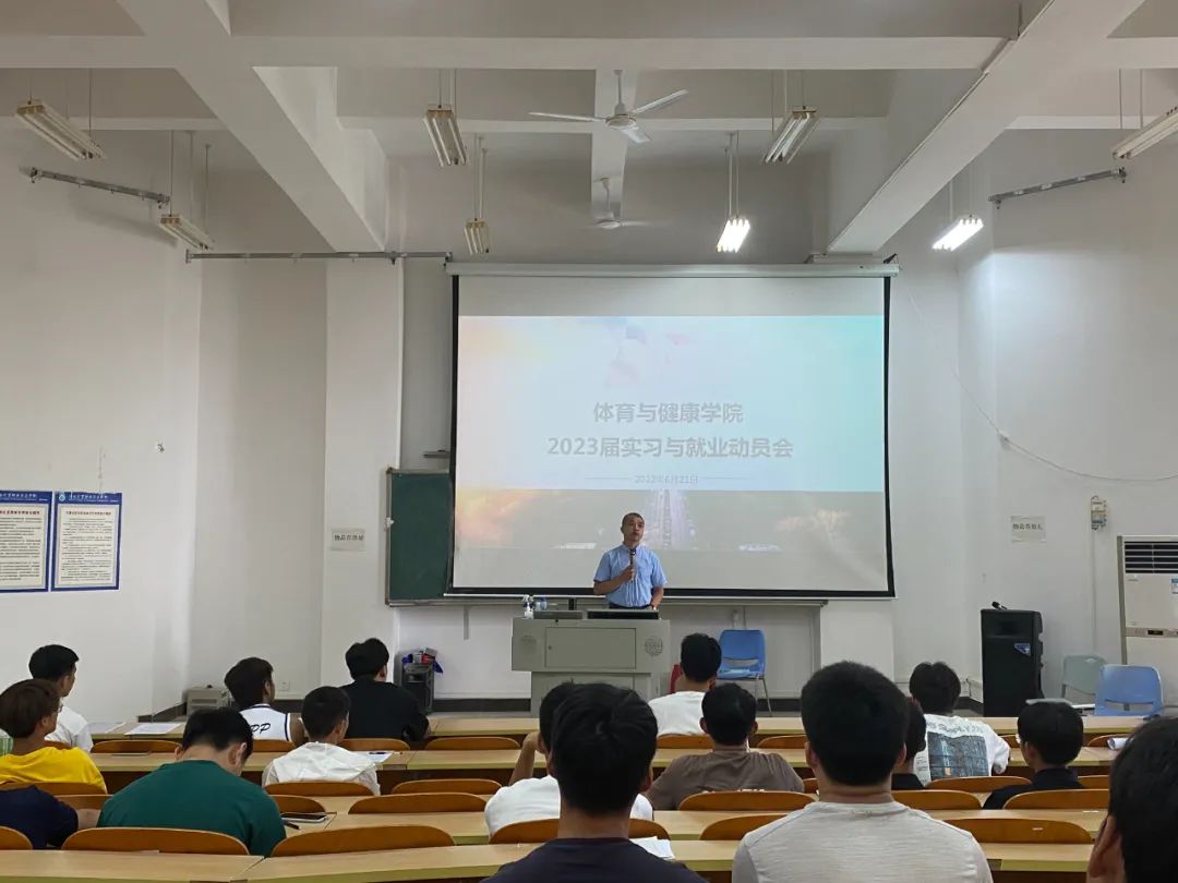 会上,黄闻寰副经理对就业择业相关事项为同学们做了讲解和指导,教务办郭柏成老师向同学们详细讲解了实习过程中将会遇到的情况,同时提醒同学们务必要关注自身学业成绩。专业教研室主任李新华老师希望同学们外出实习一定要是从事有益自身成长的实习工作,不要应付实习,并且提醒同学们一定要做好职业规划,做好升本准备。随后,陈圣老师要求同学们在完成实习工作的同时,提升就业能力,展现就业本领,为同学们讲解了如何使用就业系统。胡友波经理对2023届毕业生提出三点要求,一是要求同学们高度重视毕业实习,二是要求同学们做好自身技能提升,三是要求同学们认真高效地做好工作,同时希望同学们在完成实习之余不忘学习,保持学习,以体院人最好的精神面貌去面对生活、工作中遇到的困难。