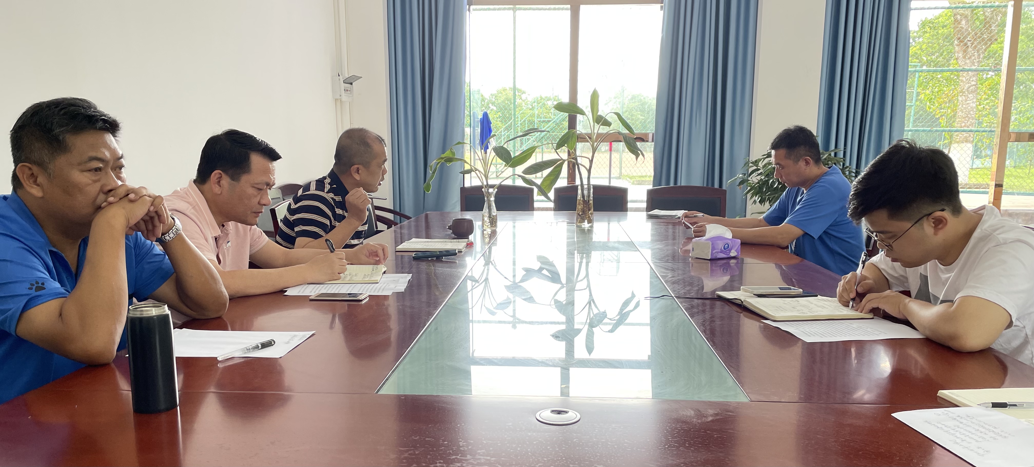 2022年5月6日上午,体育与健康公司党总支召开中心组理论学习会,深入学习习近平总书记考察海南时的重要讲话精神和习近平总书记在中国人民大学考察时的重要讲话精神。公司领导班子成员和各党支部书记出席会议,党总支书记曹迪伟主持会议。