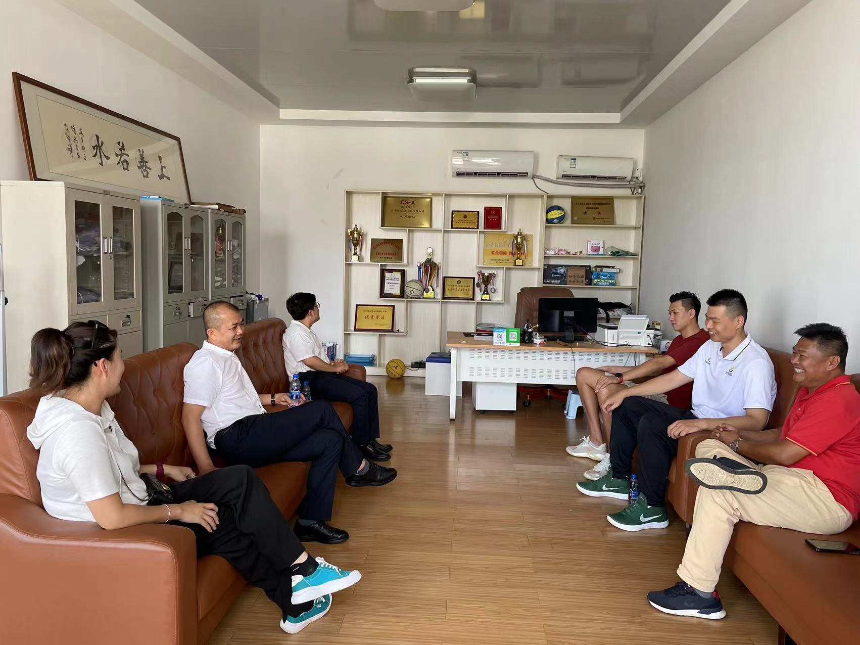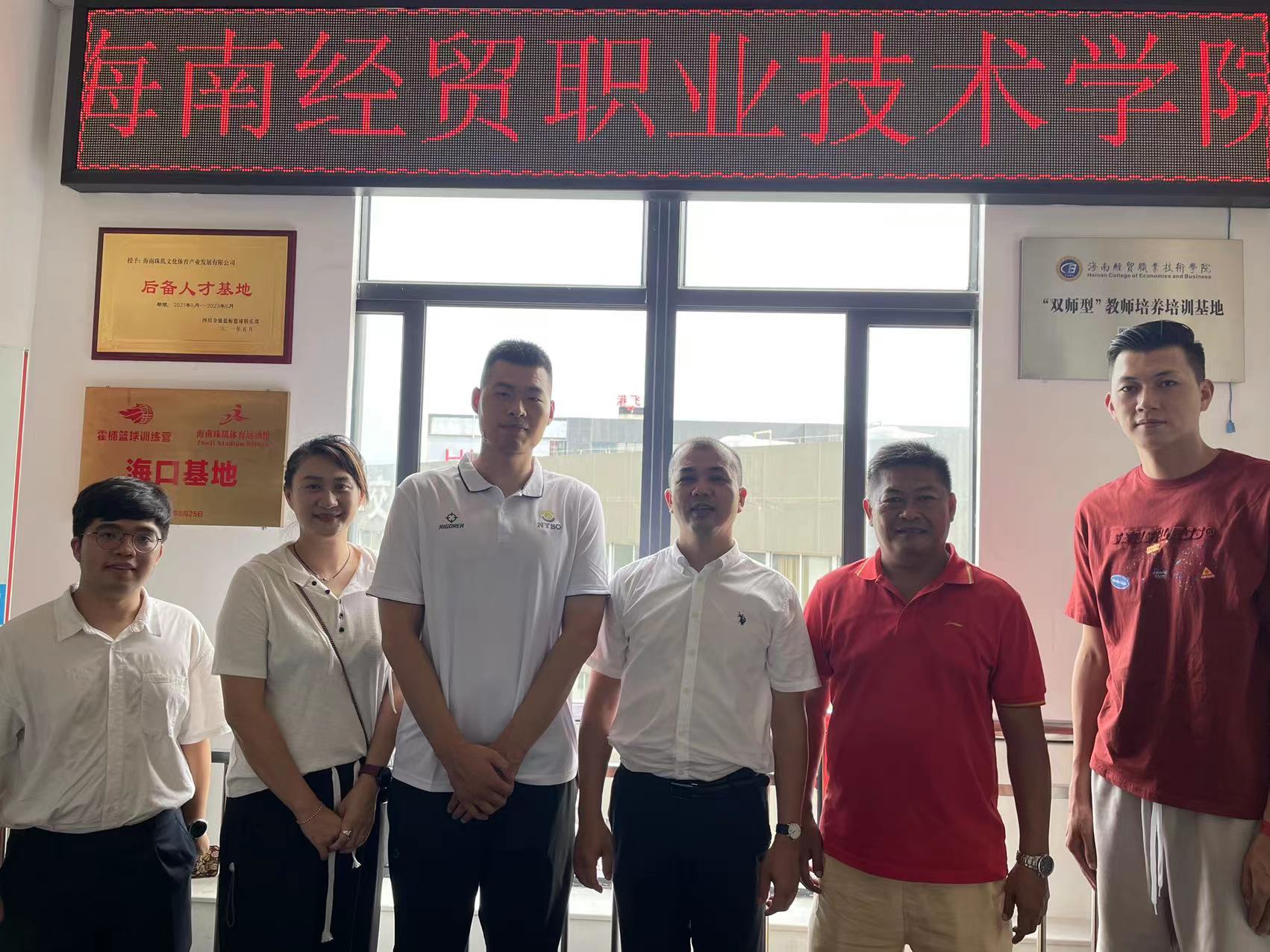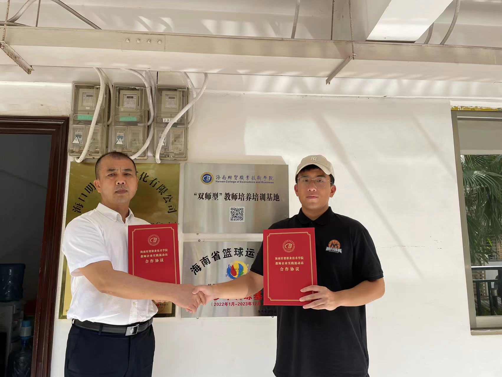 为贯彻落实《必威西汉姆官网平台教师企业实践基地建设三年行动计划(2021-2023)》和“访企拓岗”专项行动,进一步深化校企合作,落细落实教师企业实践基地建设和访企拓岗促就业工作,5月25日下午,必威西汉姆官网平台经理胡友波带队先后赴海口明升体育文化有限公司和霍楠篮球训练基地走访洽谈、签署“双师型”教师培养培训基地建设协议并挂牌。