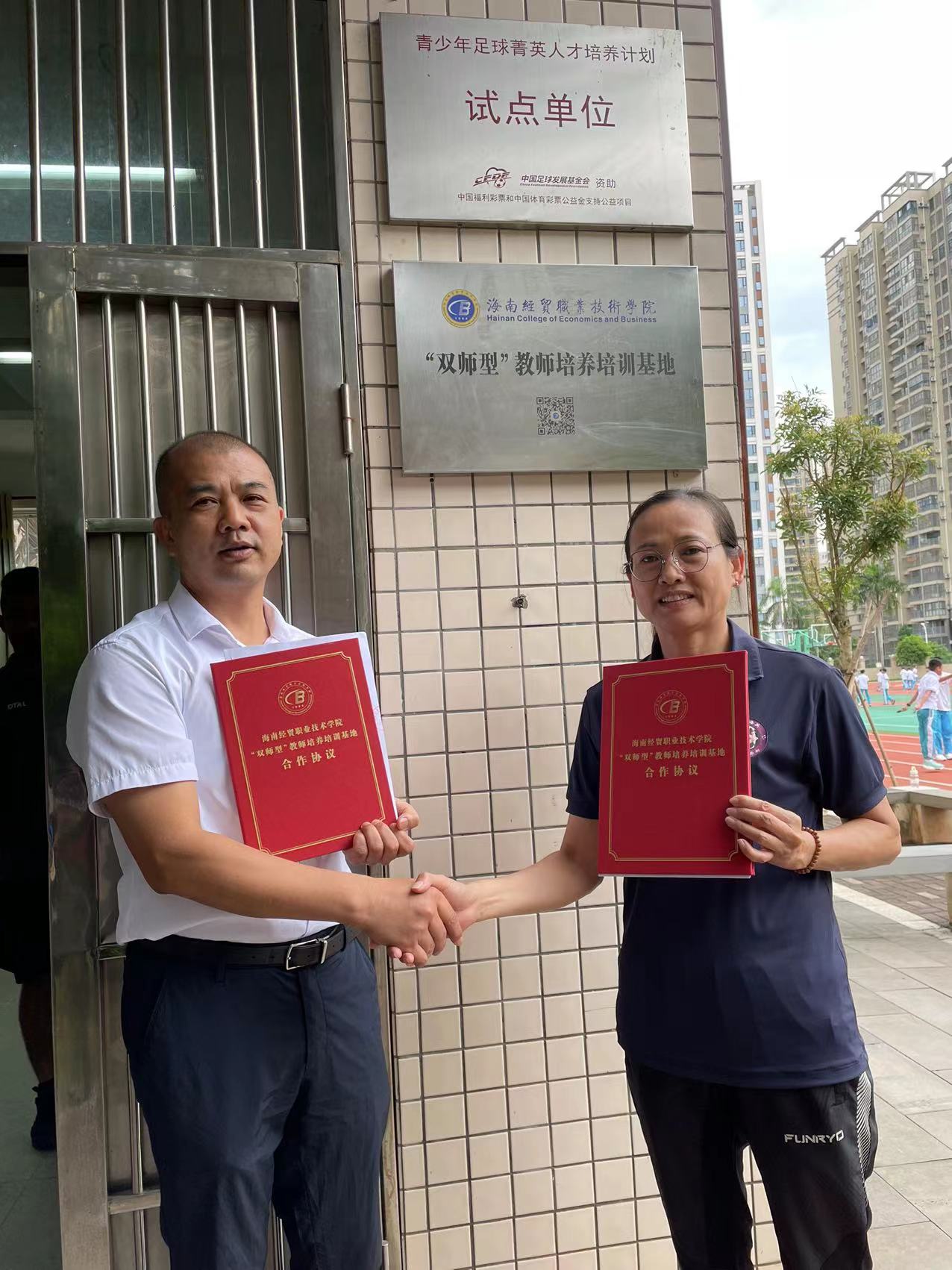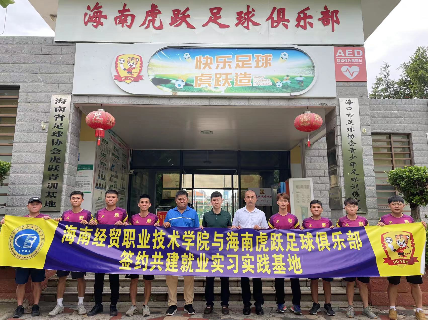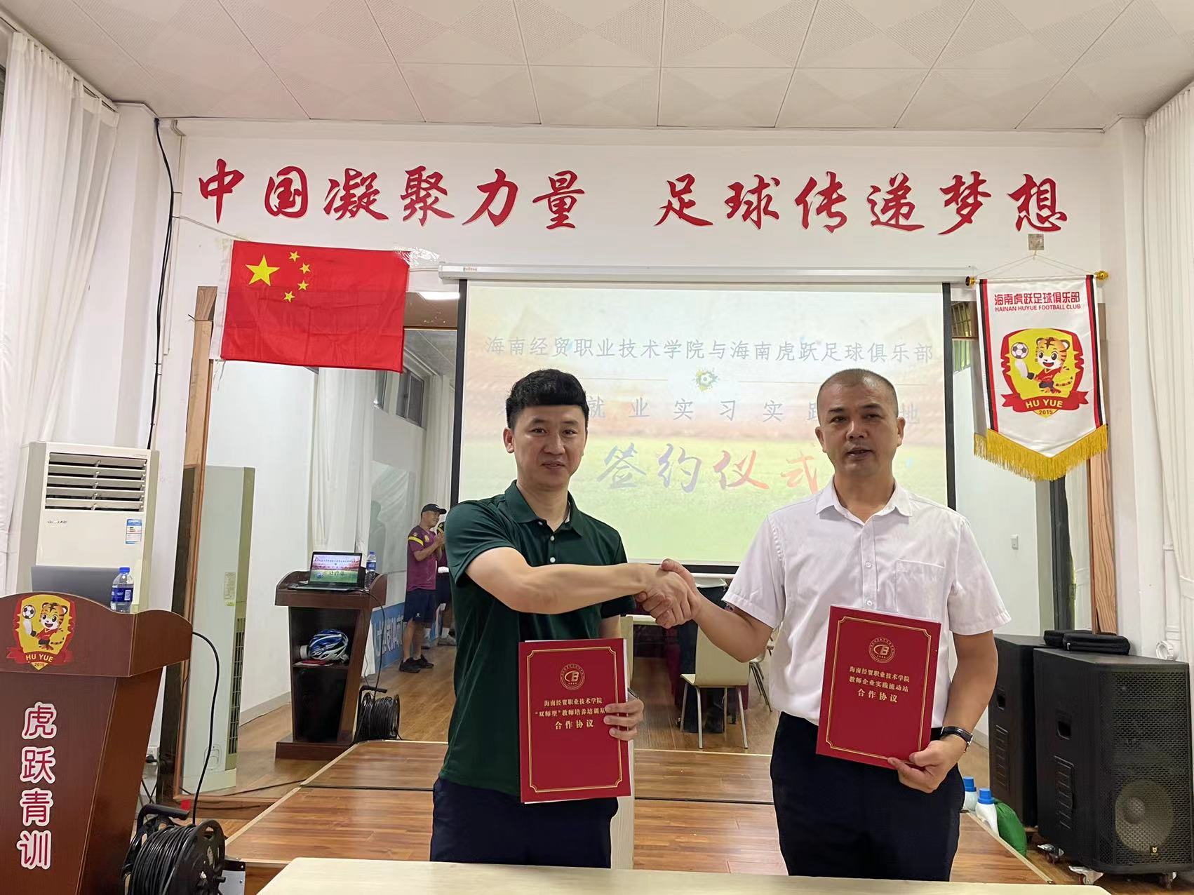 为贯彻落实《必威西汉姆官网平台教师企业实践基地建设三年行动计划(2021-2023)》和“访企拓岗”专项行动,进一步深化校企合作,落细落实教师企业实践基地建设和访企拓岗促就业工作,2022年6月8日,必威西汉姆官网平台分别与海南韦海英足球俱乐部、虎跃足球俱乐部签订合作协议并举行挂牌仪式,必威西汉姆官网平台经理胡友波、副经理黄闻寰出席。