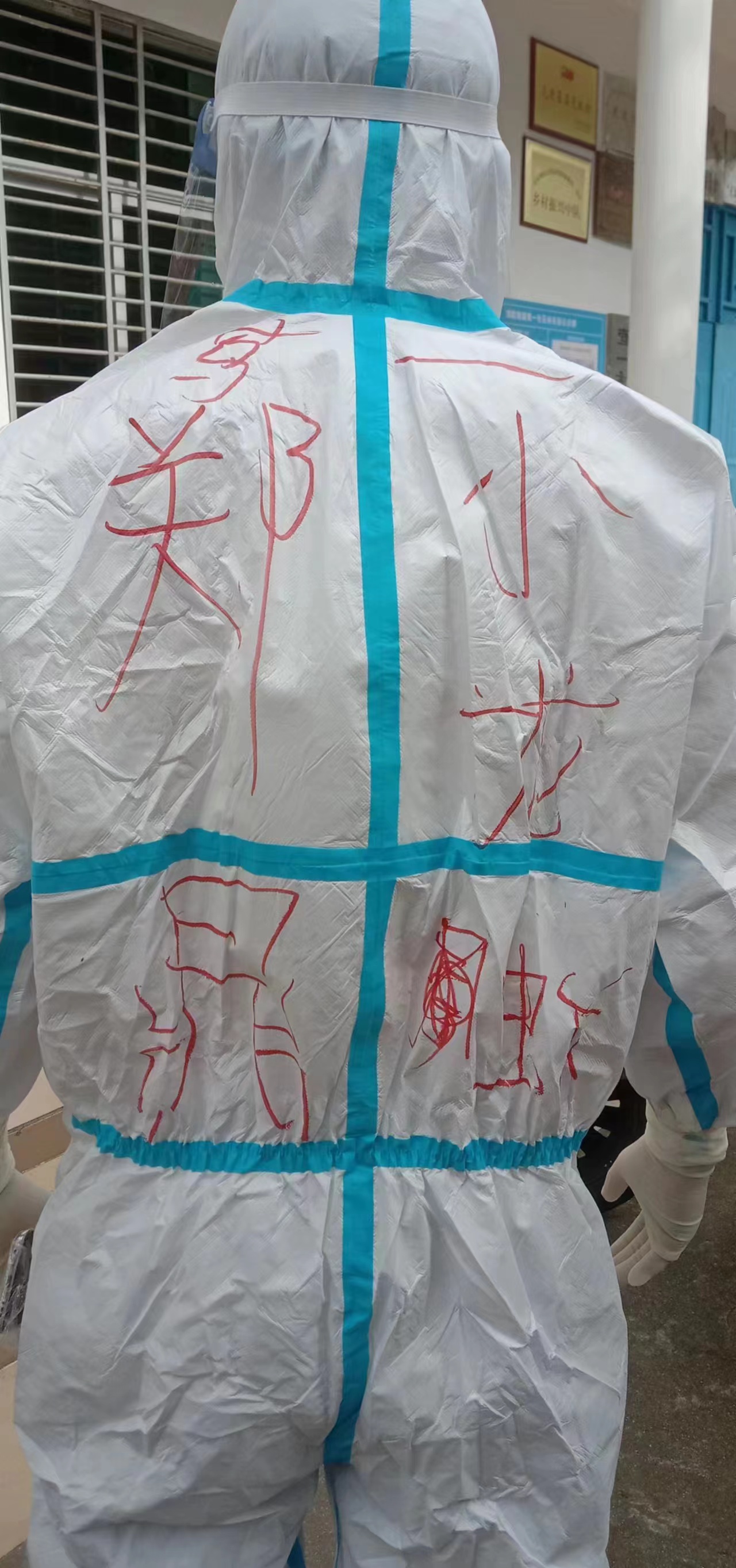 顶着烈日,身穿防护服,体院学子郑鼎同学奋战在乐东县莺歌海镇抗疫第一线。郑鼎同学朝我们比了个胜利的手势后就开始了一天的抗疫志愿服务工作。在美丽的莺歌海小镇,活跃着一群最美志愿者的身影,他们守望相助、尽己所能,坚决当好疫情防控的“守门员”、“跑腿员”、“宣传员”,为打赢这场战“疫”贡献自己的力量。