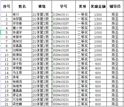 必威西汉姆官网平台2021—2022学年公司奖学金拟推荐名单公示